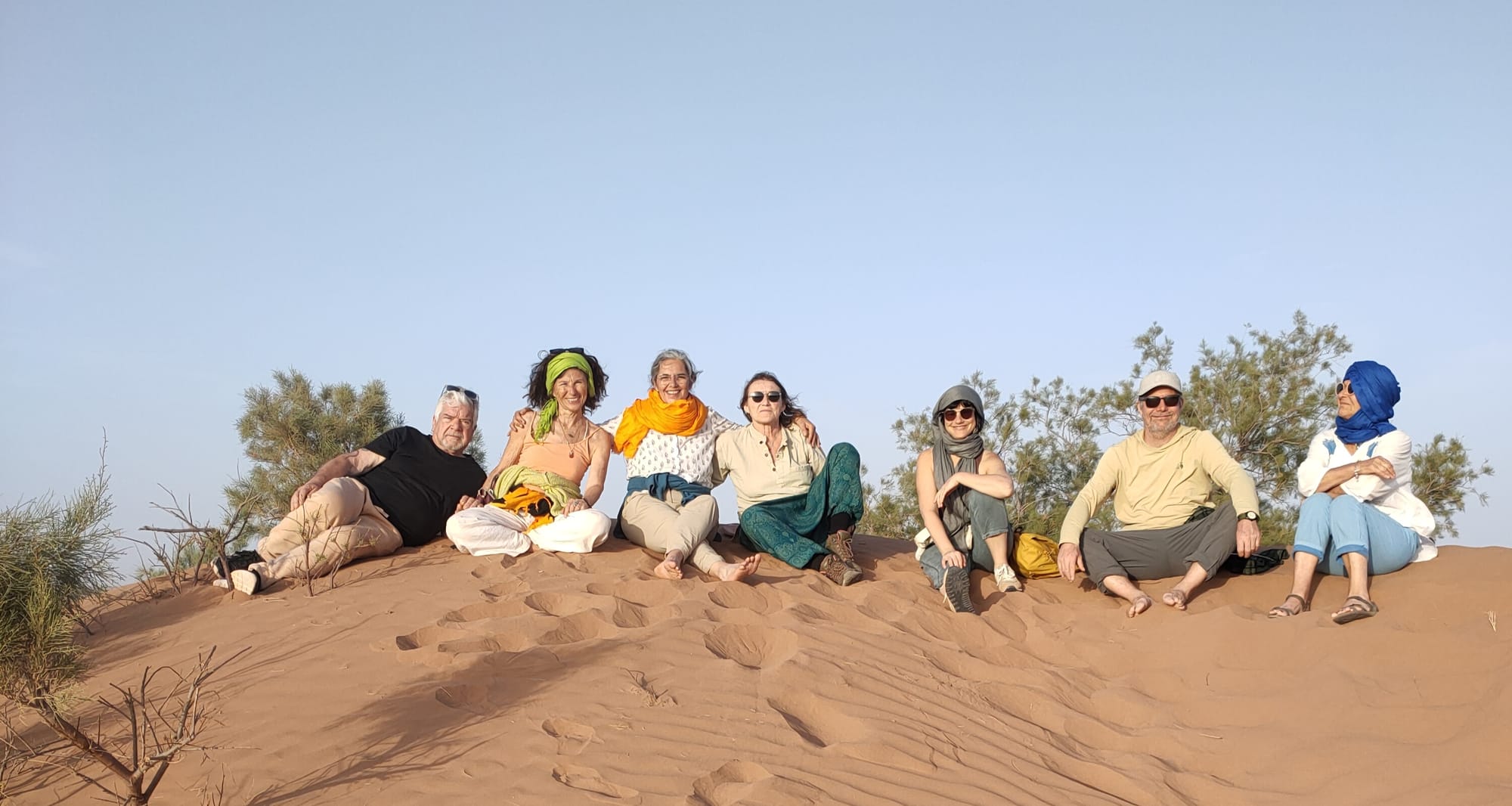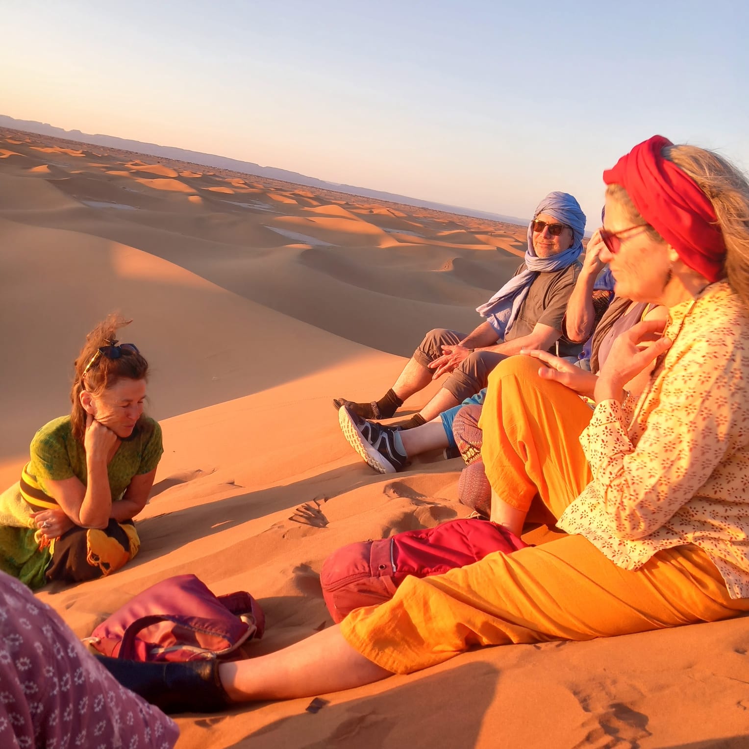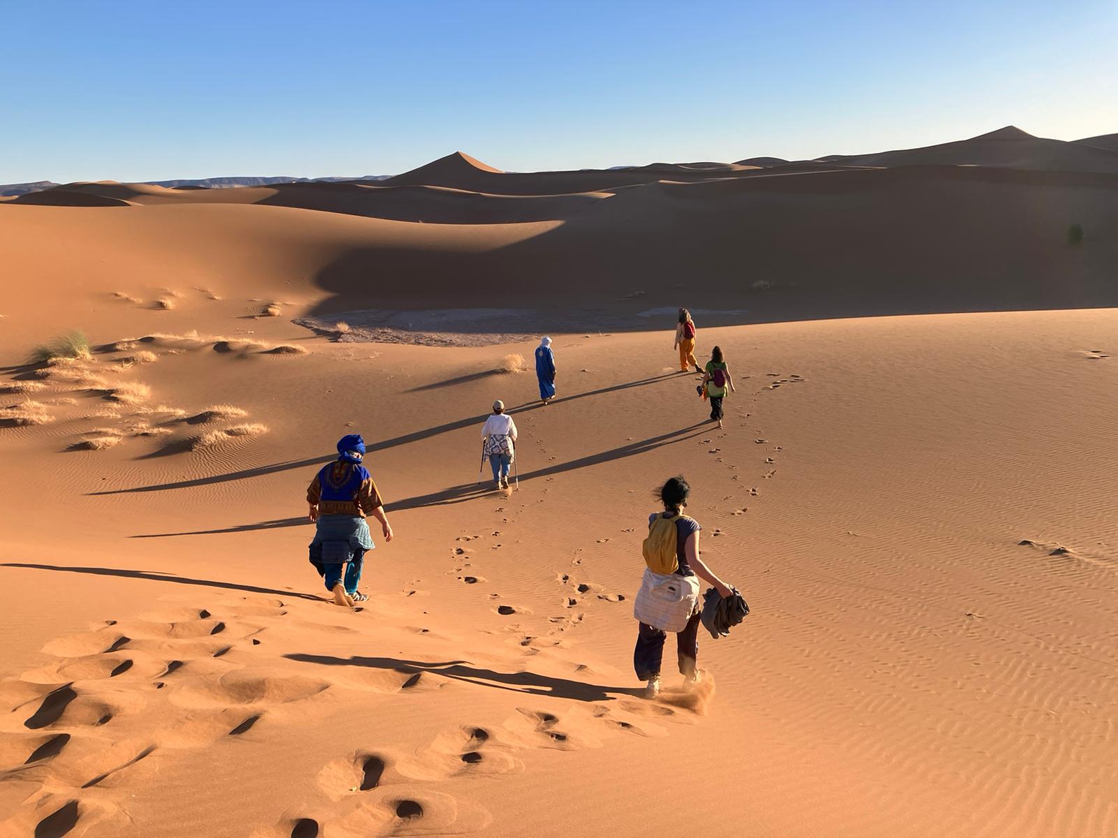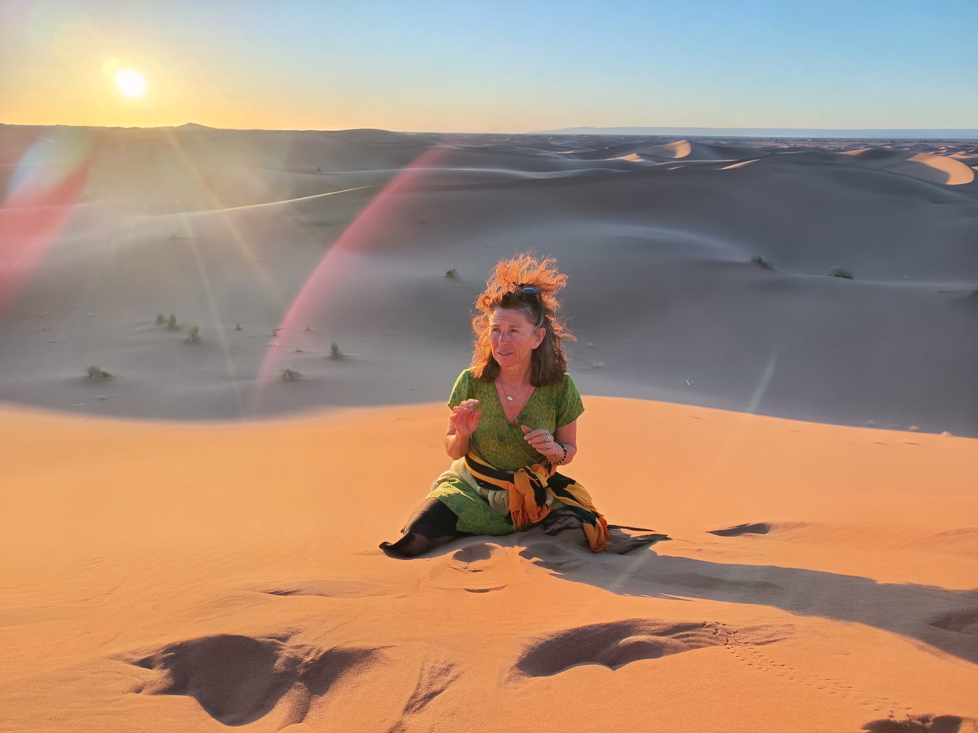 Quel voyage ressourçant! Merci Magali pour m'avoir permis de découvrir le désert du Sahara dans ces conditions optimales pour moi. J'ai adoré rencontrer les gens sur place de manière authentique, chanter et danser avec eux et lors de tes propositions d'ateliers. Je me suis régalée les yeux de ces paysages à perte de vue, et les papilles avec les tajines délicieux et les mlaoui (oh oui!!). Et cerise sur le gâteau j'ai encore une fois grandement apprécié la qualité de ta guidance en qi gong et pour la voix spontanée, du vrai bonheur! Ce qui m'a aussi convenu à 100%, c'est la souplesse dans tes propositions qui permettait d'avoir toujours le choix de participer ou d'écouter son propre rythme. En résumé je suis ravie d'avoir fait partie de ce merveilleux voyage.