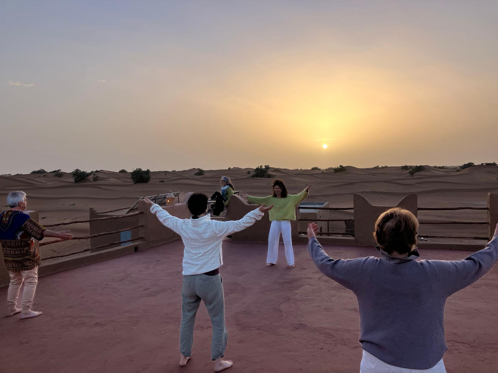 Stage Qi gong et voix dans le désert " Par Sonia Le silence, la magie du désert, la beauté du décor, l'hospitalité des autochtones nous accueillent avec tant d'authenticité, d'humanité... En ce lieu si épuré, Magali nous guide, grâce au xi gong et à la voix spontanée, elle nous ouvre à nous même avec tant de bienveillance et d'amour. Un voyage au cœur du désert, au cœur de soi où l'on retrouve le chemin de son âme. Merci infiniment Magali